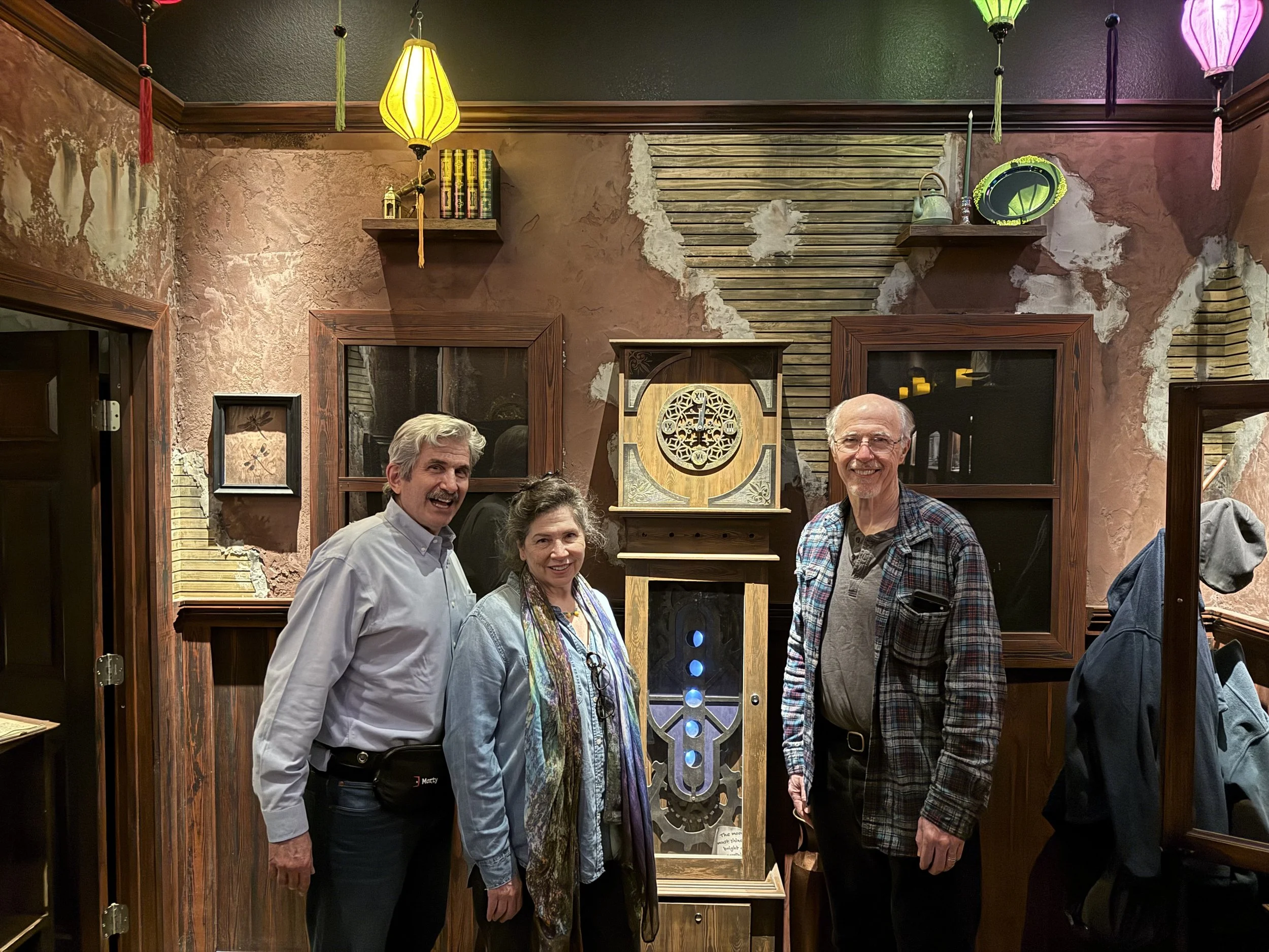 This is a puzzle-forward room with a wide variety of solving techniques. You’ll encounter a mix of tactile interactions, prop-based challenges, and some light searching—but we didn’t find the searching excessive or frustrating. In fact we solved one puzzle by longer process of elimination – not realizing that there were clues for a more direct solve that we missed.
